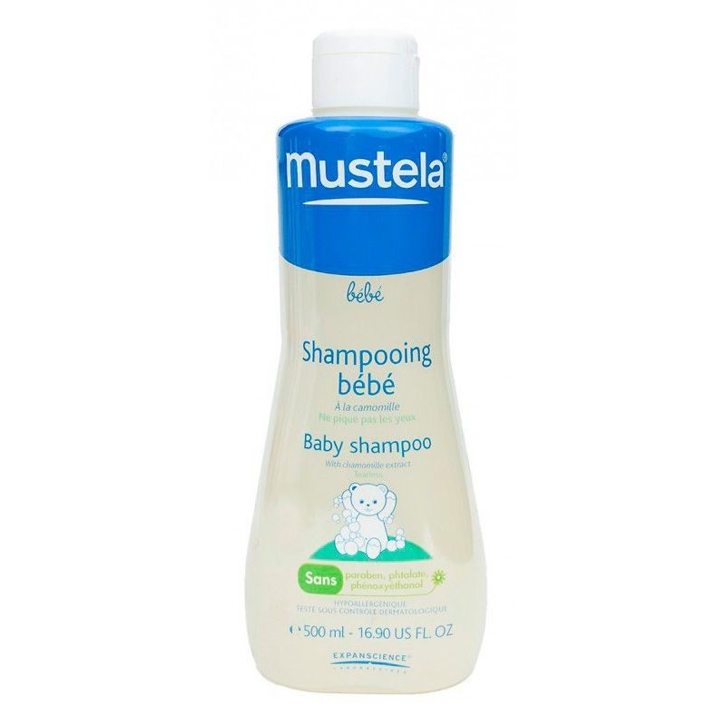 Champú con extracto de camomilaque respeta el equilibrio del cuero cabelludo del bebé. No pica en los ojosy se aclara con facilidad.